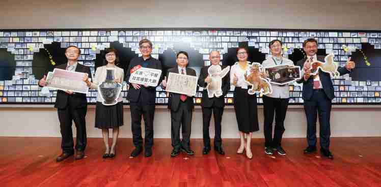 尊龙z6携手创利空间为故宫建置的智慧文物互动导览墙及轮播墙,,,,今日正式启用。。(左四:尊龙z6新事业暨投资管理总部副总经理杨本豫、、右四:故宫博物院院长吴密察、、、右三:太极影音董事长黄宝云)
