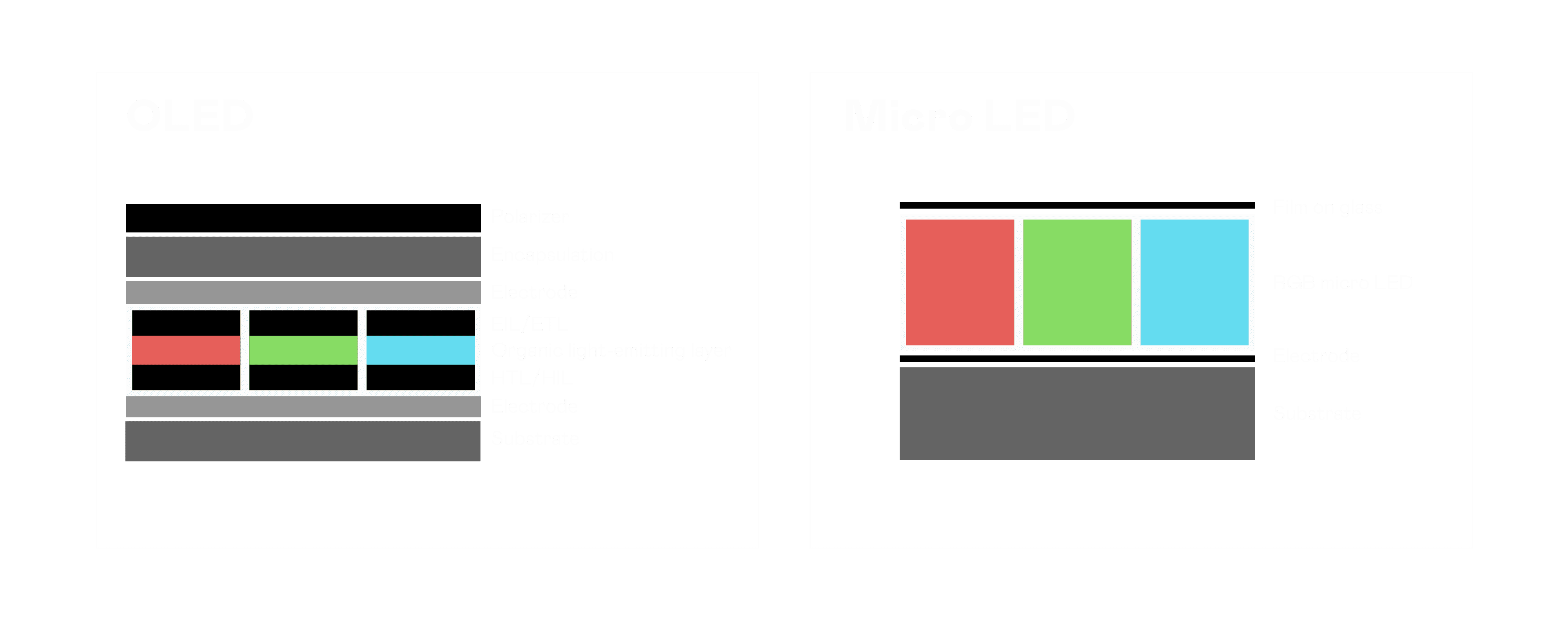 以 LED 做为显示画素,,,可让 LED 的发光效率发挥到极致,,,,从而让显示器具备优异的亮度表现,,,,不论是在户外或室内,,,均具备出众的显示效果。。同时,,,,与使用有机材料的 OLED 相比,,,,LED 具备更稳定、、寿命更长的特性,,,不仅不会有画面烙印问题,,而且更不容易出现故障、、、、坏点。。